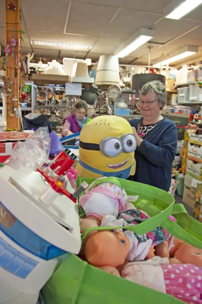 Wie zijn we? In eerste instantie was dat een handjevol vrijwilligers. Dat zijn er in de loop van de tijd steeds meer geworden. Anno 2022 bestaat ons team van vrijwilligers uit ruim 100 mensen. Die draaien iedere week minimaal één dagdeel mee in en om de winkel. De één sorteert spullen, de ander rijdt op de bus, een derde bedient de kassa en weer een ander richt de winkel zo sfeervol mogelijk in. Verder hebben we twee bedrijfsleiders die op freelance basis het hele proces in goede banen leiden. Al met al mensen die ervoor gaan en in al die jaren ongelooflijk veel werk hebben verzet.